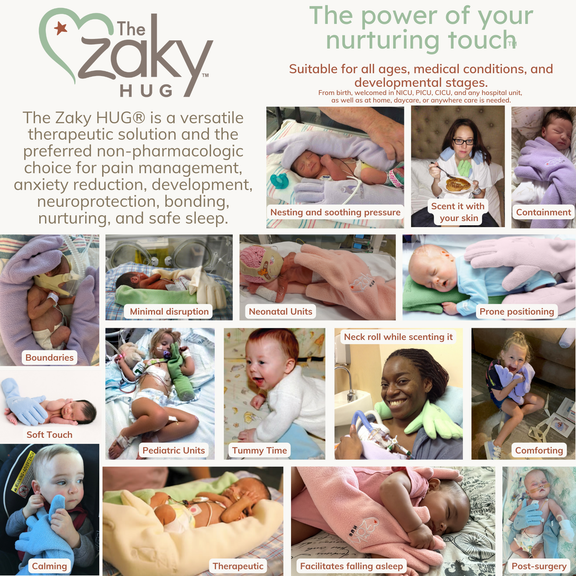 The Zaky HUG® is an evidence-based, ergonomic support designed to provide comfort, security, and better sleep. It mimics the warmth and scent of a caregiver’s touch, promoting relaxation, self-regulation, and a sense of connection. Ideal for use at home or in hospitals, it makes a thoughtful and meaningful gift.